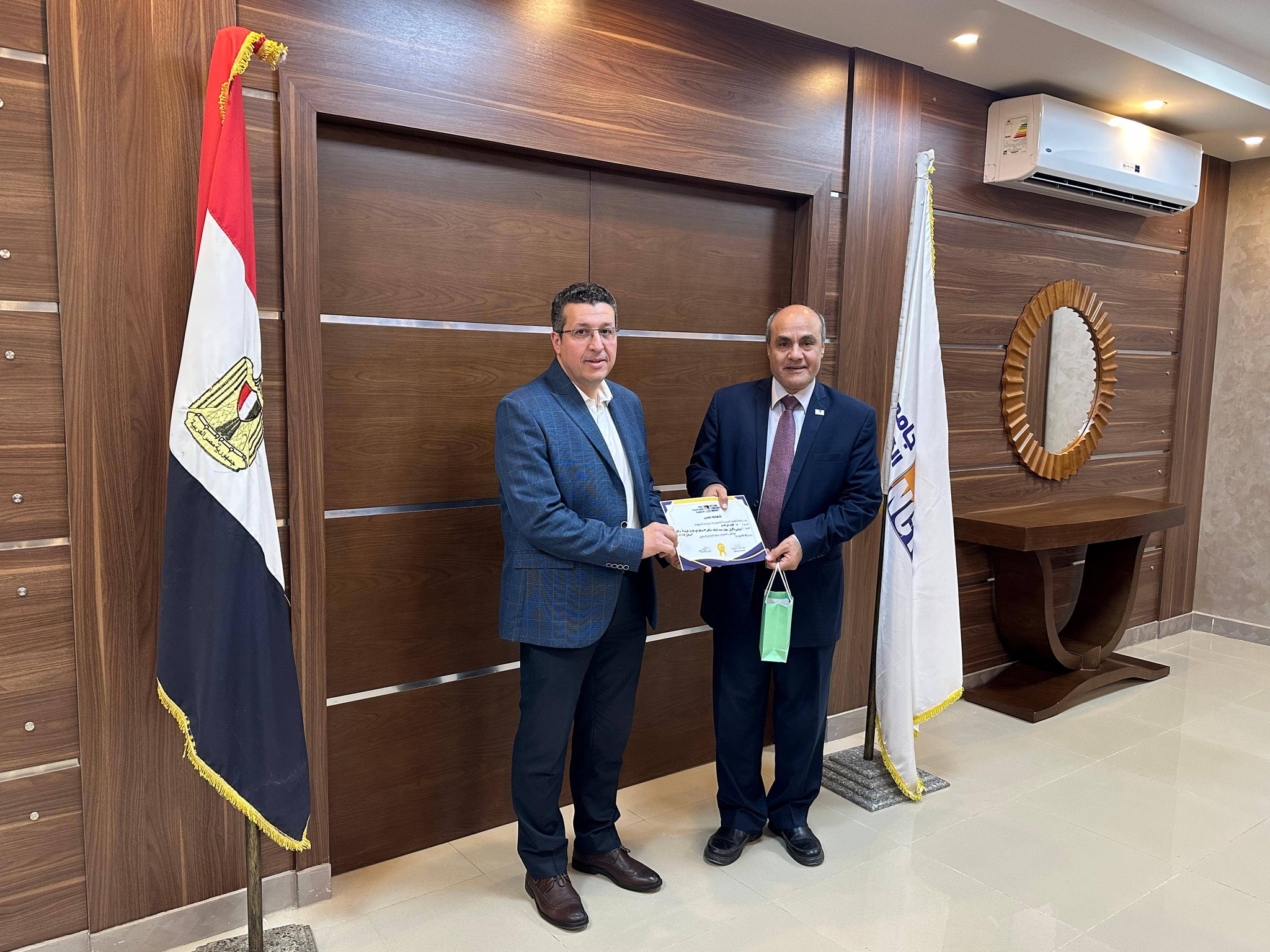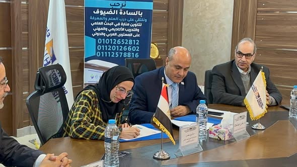 The agreement concerns the establishment of a Social Solidarity Unit at the university, in the presence of Dr. Ahmed El-Gioshy, Secretary of the Supreme Council of Technological Universities. The objective is to create communication channels between the university and the ministry to integrate efforts in providing a package of social services for university students.